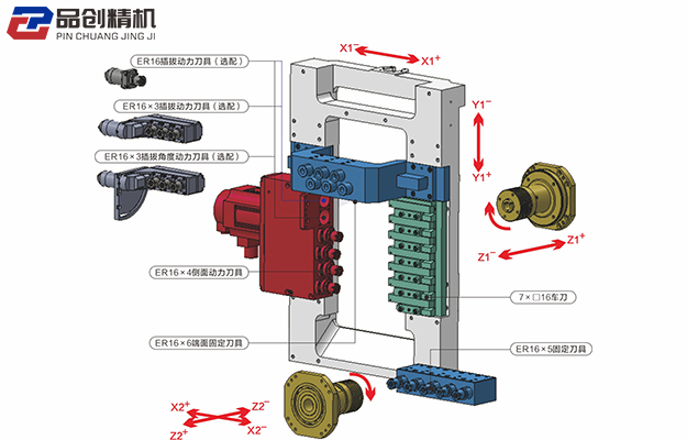 | 主軸側(cè)面動力刀具 | 4×?ER16 +2×?ER16(選配) |